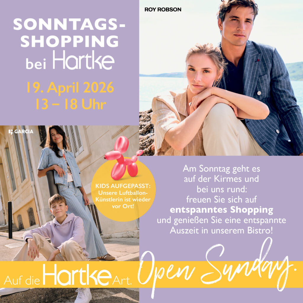 Am 19. April von 13–18 Uhr laden wir Sie herzlich zum entspannten Shopping-Sonntag ein. Entdecken Sie die neuesten Trends, genießen Sie eine kleine Auszeit und lassen Sie sich inspirieren.